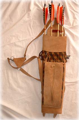 Rückenköcher aus Wildleder mit mehrfarbiger Lederapplikation,